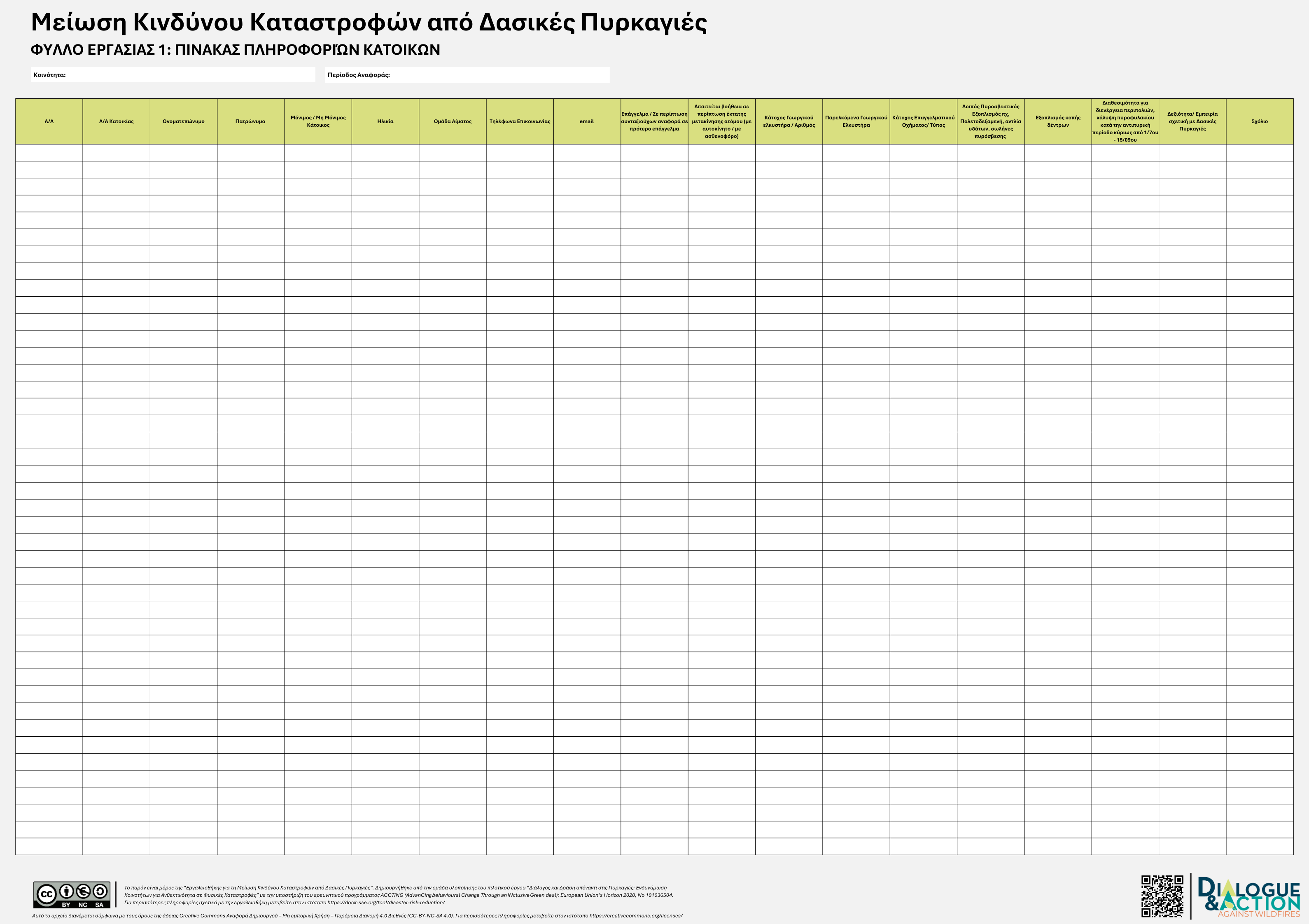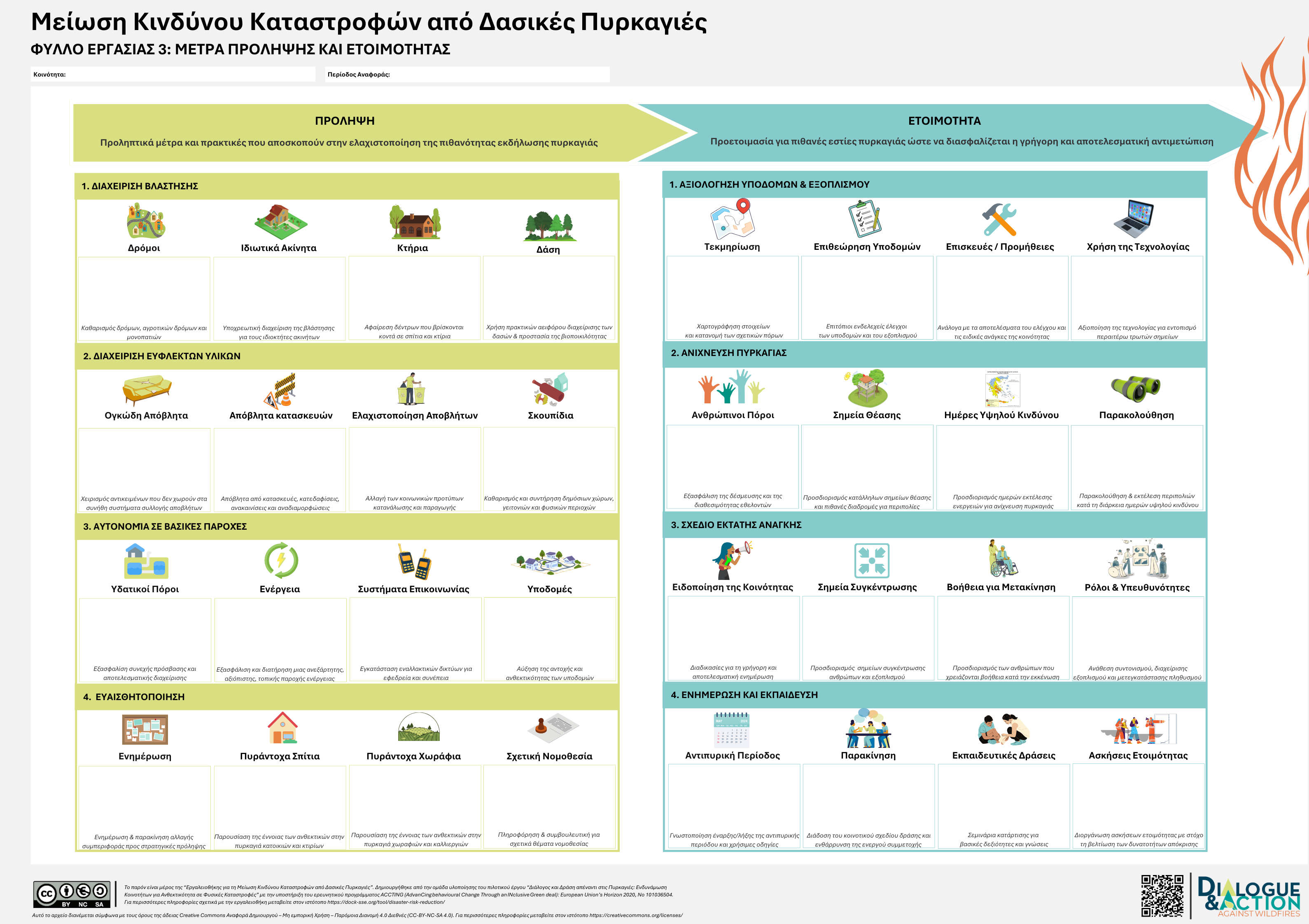 Η εργαλειοθήκη αναπτύχθηκε στο πλαίσιο του προγράμματος Διάλογος και Δράση απέναντι στις Δασικές Πυρκαγιές, ένα πιλοτικό πρόγραμμα μέσα από το οποίο δουλέψαμε με τέσσερις κοινότητες της Μεσσηνίας ώστε να μειώσουν τον κίνδυνο φυσικών καταστροφών και να βελτιώσουν την ετοιμότητά τους μέσα από διαδικασίες συμμετοχικού σχεδιασμού, διαλόγου και συλλογικών δράσεων.